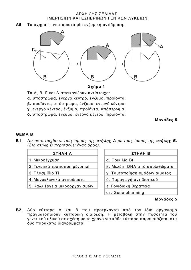 Δείτε εδώ τα θέματα της Βιολογίας.Παράλληλα, «τα σημερινά θέματα στη Βιολογία κρίνονται βατά, χωρίς ασάφειες και καλύπτουν όλο το εύρος της ύλης. Ιδιαίτερη προσοχή θέλει το θέμα Γ και το υποερώτημα Δ3. Τα θέματα δεν αναμένεται να δυσκολέψουν τους καλά προετοιμασμένους υποψήφιους», σημειώνουν οι εκπαιδευτικοί.