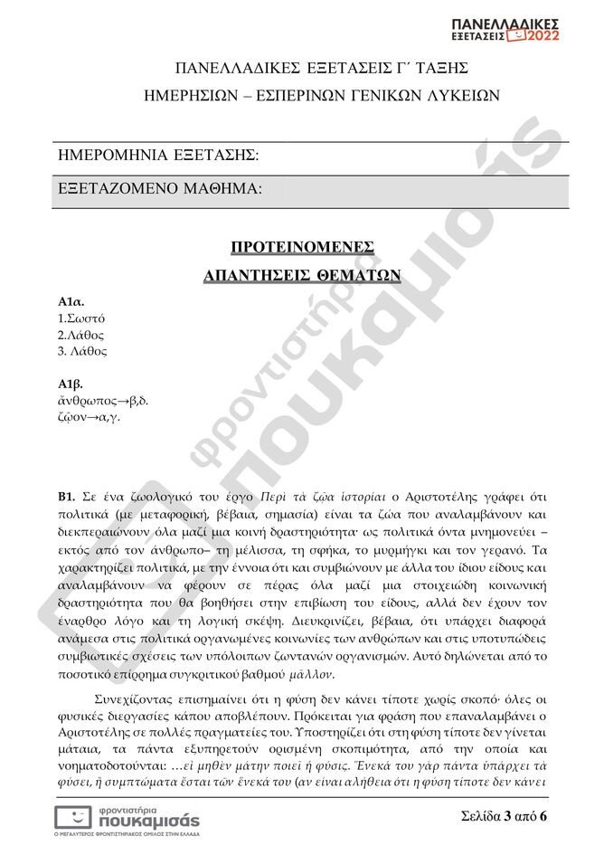 Δείτε εδώ τις απαντήσεις της Βιολογίας.