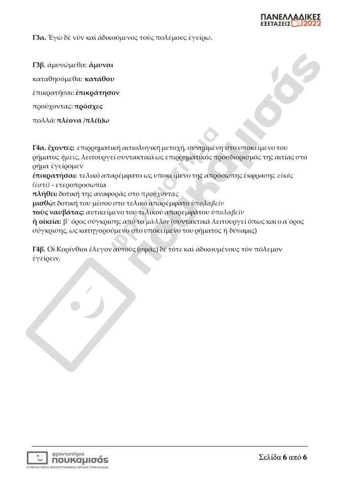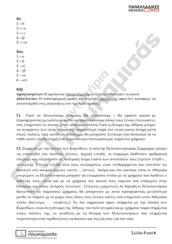 «Το Β5 που ήταν το παράλληλο κείμενο ήθελε λίγο προσοχή στη διατύπωσή του, ενώ το αδίδακτο κείμενο ήταν αρκετά απαιτητικό αφού μιλάμε για ένα απόσπασμα από το έργο του Θουκυδίδη. Είχαμε αρκετά χρόνια δούμε τον Θουκυδίδη στις Πανελλήνιες και πάντα είναι ένα θέμα που θέλει ιδιαίτερη προσοχή, τόσο η γραμματική όσο και το συντακτικό ήθελαν ιδιαίτερη διαχείριση καθώς τα ζητούμενα ήταν αρκετά απαιτητικά.