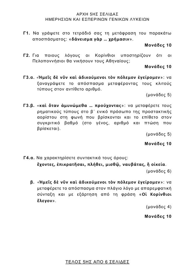 Αντίστοιχα, τα θέματα των Αρχαίων Ελληνικών ως προς το διδαγμένο κείμενο θεωρούνται πρωτότυπα και αρκετά κατανοητά, ως προς το αδίδακτο κείμενο όμως ήταν απαιτητικά για καλά προετοιμασμένους μαθητές.