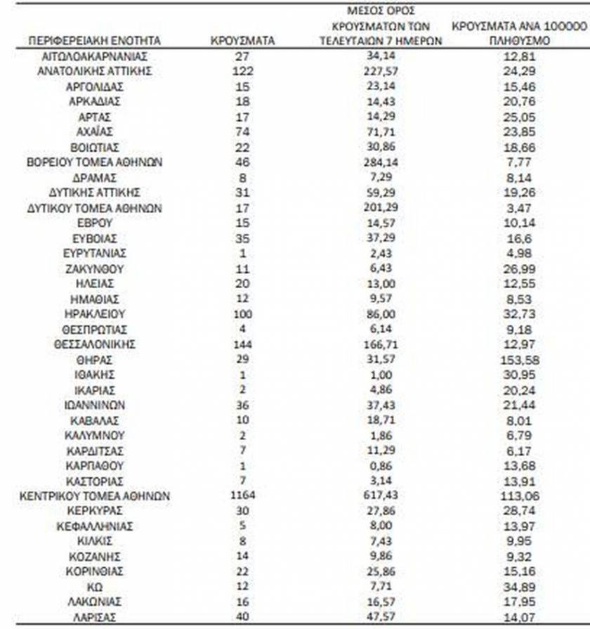 Αναλυτικά σύμφωνα με τον ΕΟΔΥ η γεωγραφική κατανομή των κρουσμάτων, έχει ως εξής: