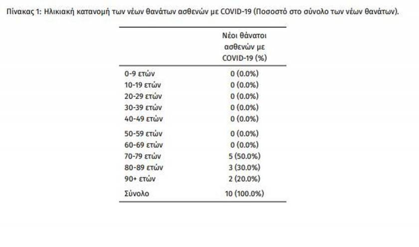 Οι νέοι θάνατοι ασθενών με COVID-19 είναι 10, ενώ από την έναρξη της επιδημίας έχουν καταγραφεί συνολικά 29.927 θάνατοι. Το 95.6% είχε υποκείμενο νόσημα ή/και ηλικία 70 ετών και άνω.