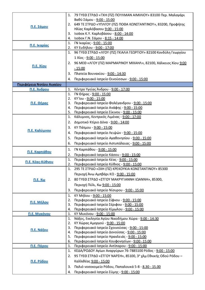*Ενδέχεται να υπάρξουν τροποποιήσεις – αλλαγές στα σημεία και στο ωράριο των μαζικών δειγματοληψιών.