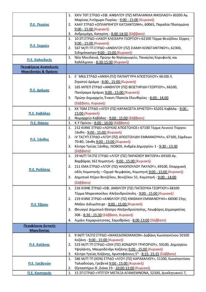 - Σέρρες, Κέντρο Υγείας Σερρών, 08:30-19:30