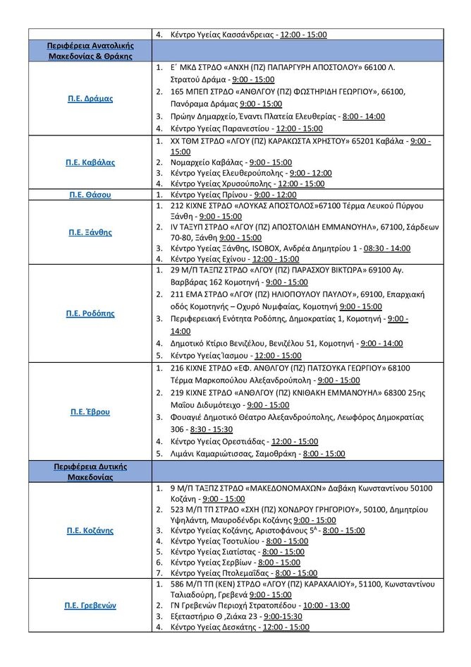 Κοζάνη, Κέντρο Υγείας Κοζάνης, Αριστοφάνους 5Α, 08:30-15:30 - Κοζάνη, Πνευματικό Κέντρο, Βελβεντός, 11:00-13:00