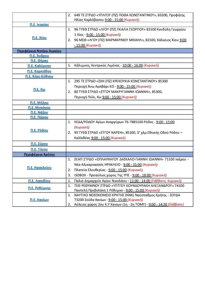 *Ενδέχεται να υπάρξουν τροποποιήσεις - αλλαγές στα σημεία και στο ωράριο των μαζικών δειγματοληψιών.
