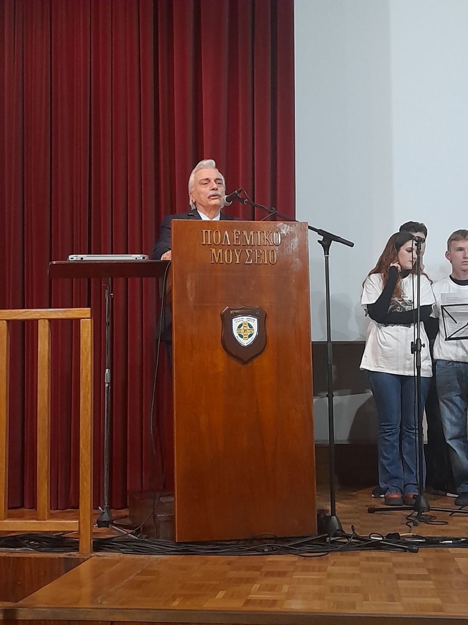 Οι περίπου 800 θεατές που κατέκλυσαν την αίθουσα του Πολεμικού Μουσείου ταξίδεψαν νοερά με το μουσικό-ποιητικό έργο «Σμύρνη μου αλησμόνητη πατρίδα» του Πασχάλη Τόνιου (βασισμένο σε ποίηση των Γιώργου Σεφέρη, Κωνσταντίνου Καβάφη, Κωστή Παλαμά, Στρατή Μυριβήλη, Διδώ Σωτηρίου κ.α.) και τις καταπληκτικές ερμηνείες από τους Γεράσιμο Ανδρεάτο, Πέτρο Γαϊτάνο, Πέγκυ Ζήνα, Κώστα Τριαναταφυλλίδη, Μαρία Σουλτάτου και Πασχάλη Τόνιου, καθώς και της παιδικής χορωδίας Δημήτρη Τυπάλδου. Την εκδήλωση προλόγισε ο Υφυπουργός Παιδείας και Θρησκευμάτων, κ. Άγγελος Συρίγος, ενώ την αφήγηση πραγματοποίησε ο ηθοποιός, Γρηγόρης Βαλτινός. Αξίζει να σημειωθεί ότι, στον χώρο της εκδήλωσης, συγκεντρώθηκε μεγάλη ποσότητα τροφίμων από τον κόσμο που παρακολούθησε τη συναυλία, τα οποία θα ενισχύσουν άμεσα παιδιά ευάλωτων οικονομικά οικογενειών της πόλης.