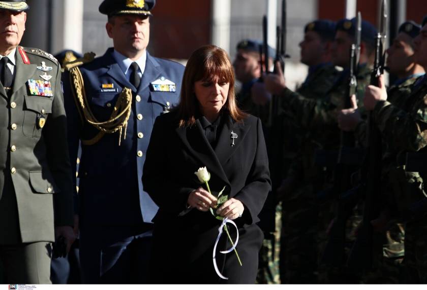 Στεφάνι κατέθεσε στο μνήμα η Πρόεδρος της Δημοκρατίας, ενώ ο αρχηγός ΓΕΑ παρέδωσε το ξίφος και τη σημαία.