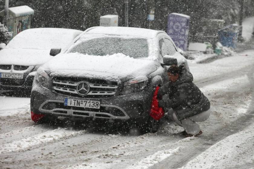 Η αστυνομία έχει στήσει «μπλόκα» και διενεργεί ελέγχους αν τα οχήματα που κυκλοφορούν σήμερα στους δρόμους είναι εφοδιασμένα με αλυσίδες.