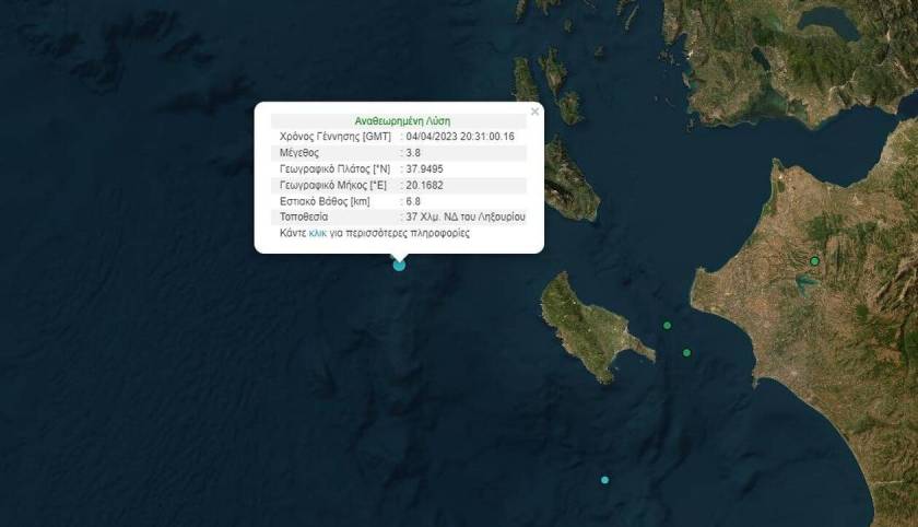 Το επίκεντρο του σεισμού εντοπίστηκε 37 Χλμ. ΝΔ του Ληξουρίου, σύμφωνα με το Γεωδυναμικό Ινστιτούτο.