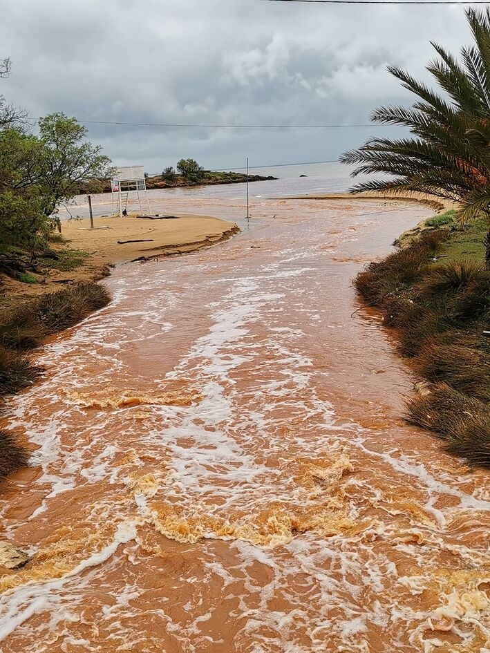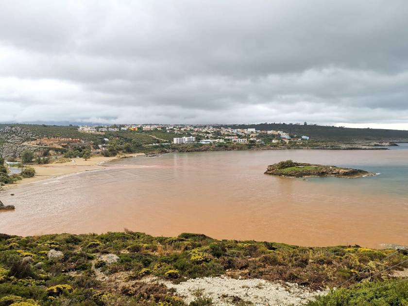 Όπως αναφέρει η ίδια πηγή, είναι τόσο μεγάλη η ένταση της βροχής που έχουν κατέβει οι χείμαρροι από τις πλαγιές, φέρνοντας κοκκινόχωμα στις παραλίες του Καλαθά και του Τερσανά.