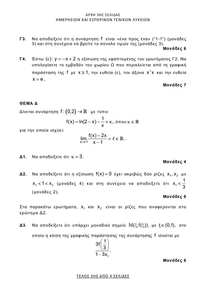 Τα θέματα στα Μαθηματικά στα ΓΕΛ