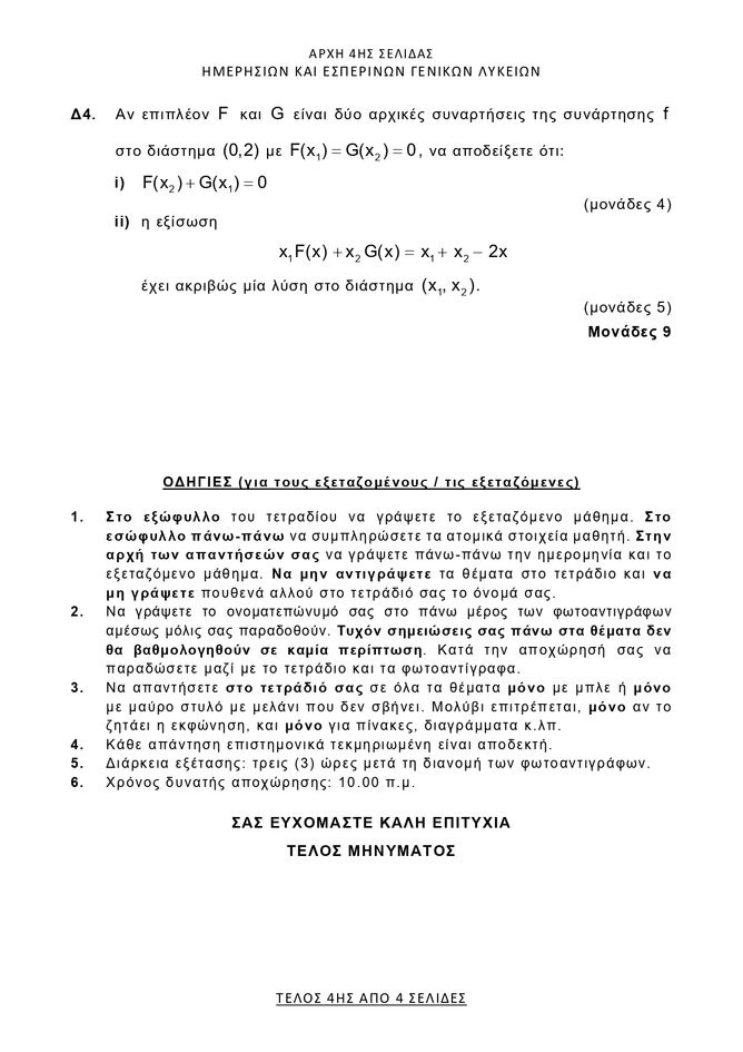 Για την εξέταση του μαθήματος «Μαθηματικά» της Ομάδας Προσανατολισμού Θετικών Σπουδών και Σπουδών Υγείας και της Ομάδας Προσανατολισμού Σπουδών Οικονομίας και Πληροφορικής, ισχύουν τα εξής: