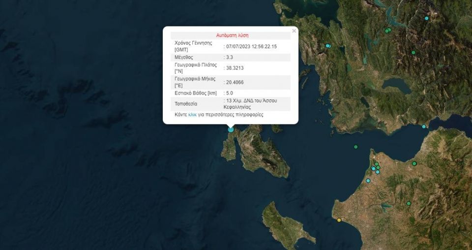 Σεισμός 3,3 Ρίχτερ στην Κεφαλλονιά