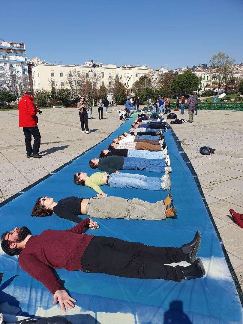 Στη διαδικασία δημιουργίας του έργου, συμμετείχαν περίπου 50 άτομα τα οποία με ειδική στάση τους σώματός τους άφησαν το δικό τους αποτύπωμα στο πανί. Η δράση έλαβε χώρα στην Πλατεία Χημείου του ΑΠΘ.