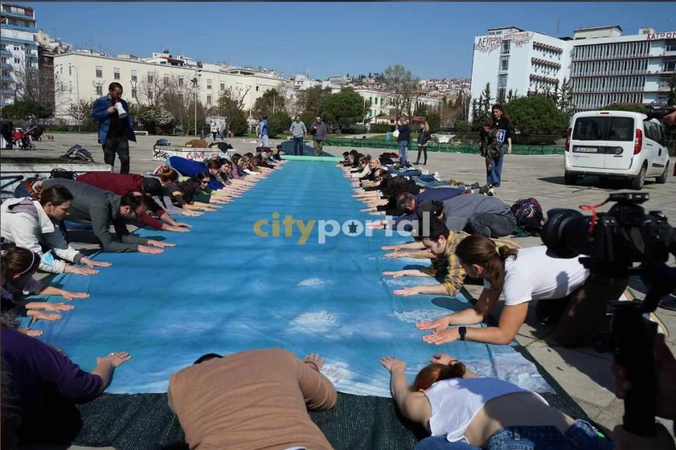 Θεσσαλονίκη: Ανθρώπινη αλυσίδα μνήμης αφιερωμένη στα 57 θύματα των Τεμπών