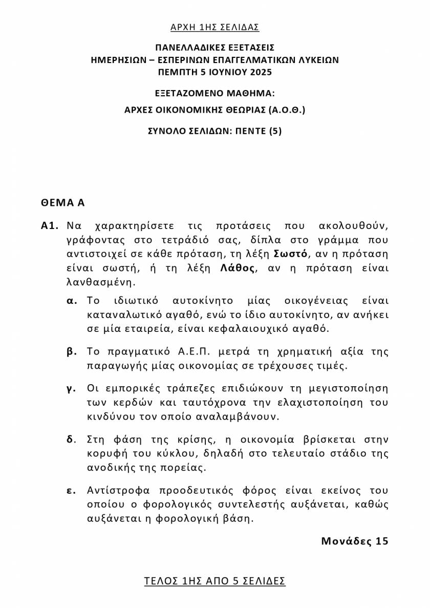 Αυτά είναι τα θέματα στο μάθημα των Αρχών Οικονομικής Θεωρίας