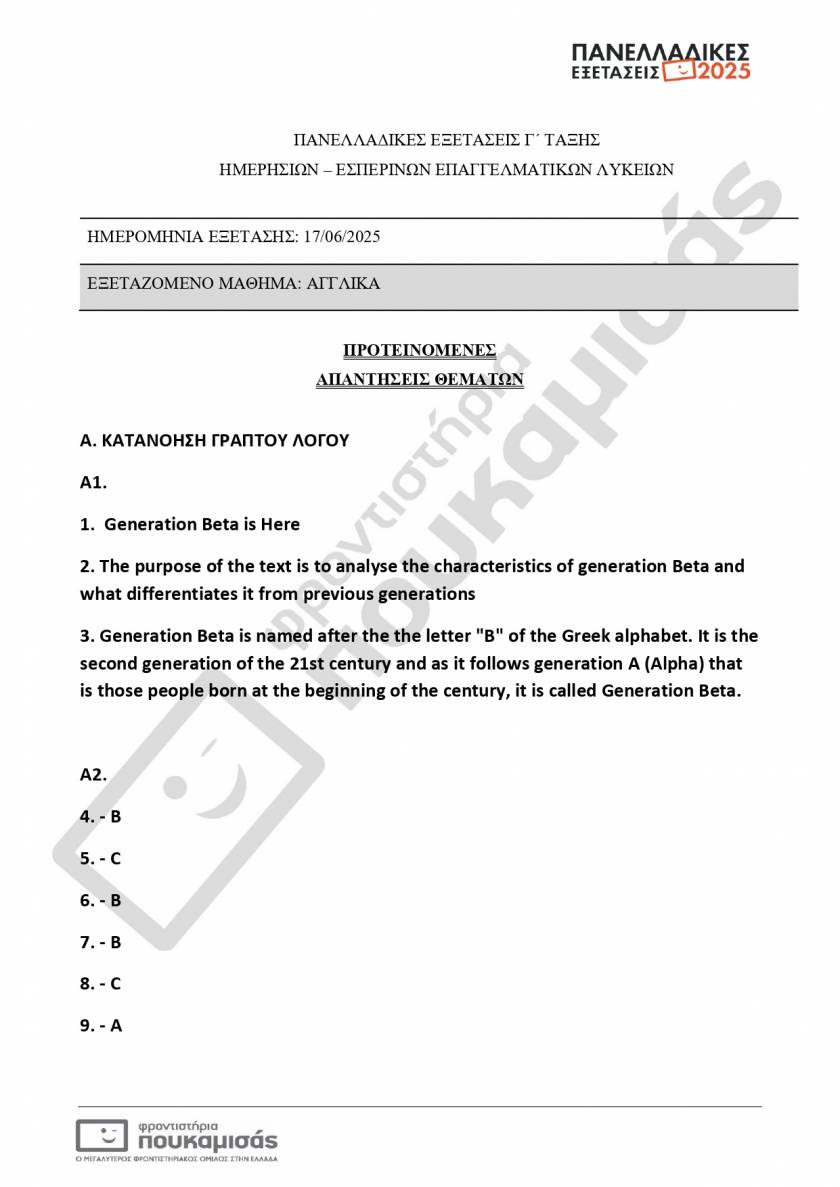 Πανελλήνιες 2025: Αυτές είναι οι απαντήσεις στο ειδικό μάθημα των Αγγλικών