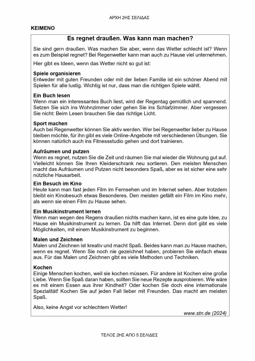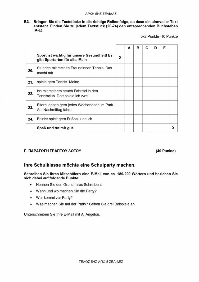 Tα θέματα στο ειδικό μάθημα των Γερμανικών