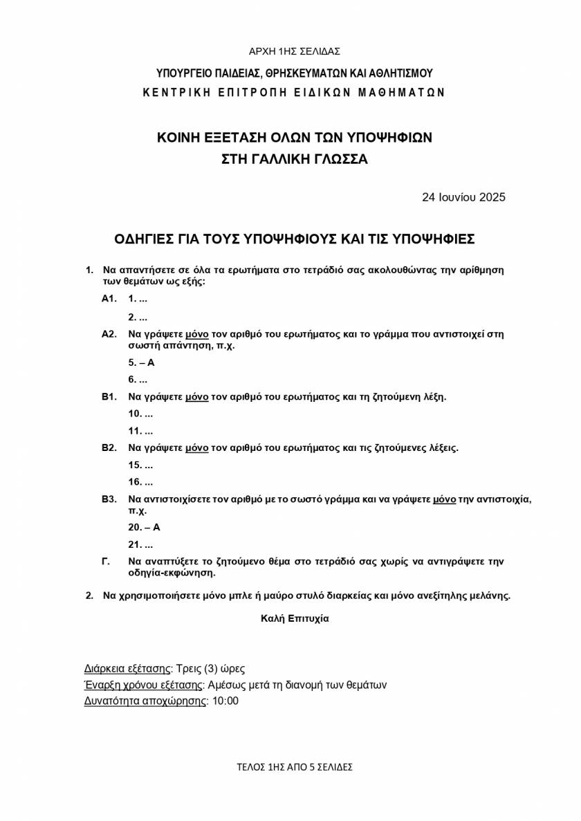 Πανελλήνιες 2025: Αυτά είναι τα θέματα στο ειδικό μάθημα των Γαλλικών