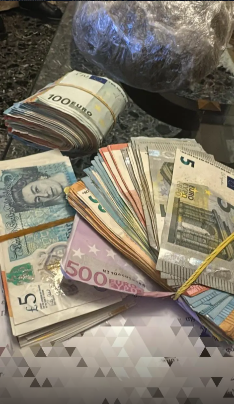 * το χρηματικό ποσό των 38.564 ευρώ, 1.100 λίρες Αγγλίας, 13 δολάρια Αμερικής,