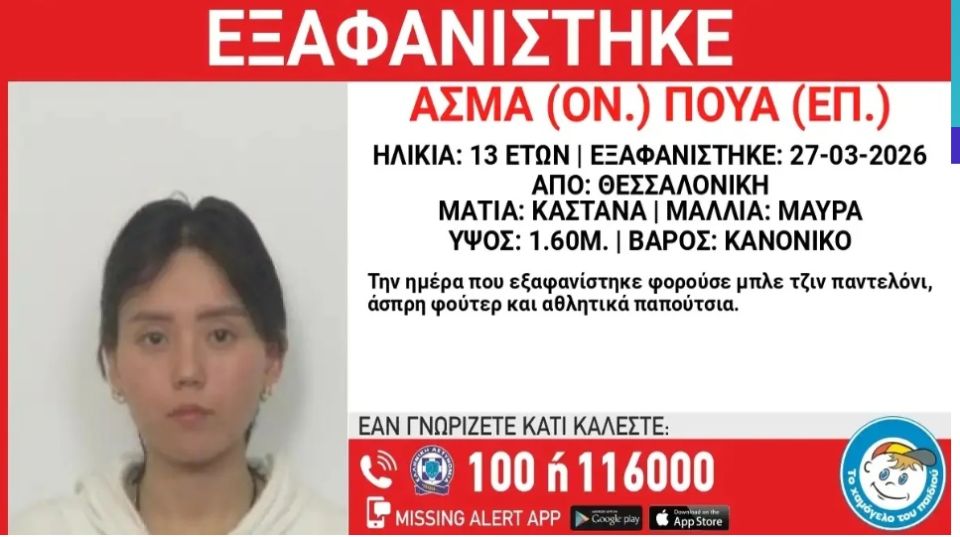 Σε ανακοίνωσή του το «Χαμόγελο του Παιδιού» αναφέρει ότι τα ίχνη της 13χρονης Άσμα Πούα χάθηκαν στις 27 Μαρτίου, απογευματινές ώρες από την περιοχή της Θεσσαλονίκης.