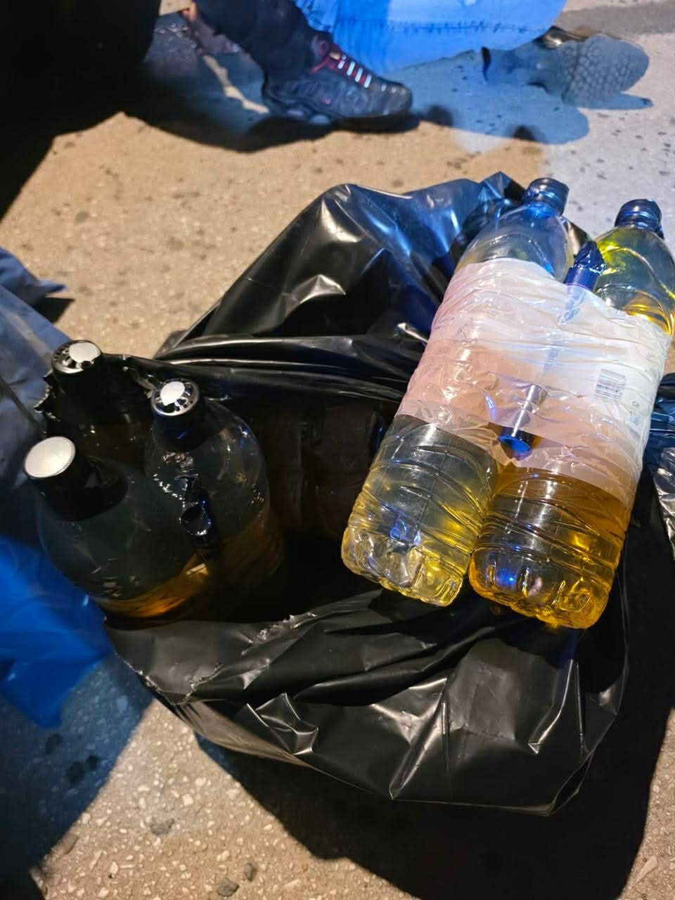 Κατασχέθηκαν περίπου 30 ναυτικές φωτοβολίδες και 100 περίπου εμπρηστικοί-εκρηκτικοί μηχανισμοί, με φιάλες 1.5 λίτρου εμπεριέχοντες εύφλεκτο υγρό.