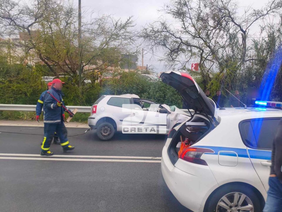Ο οδηγός μεταφέρθηκε στο νοσοκομείο Ρεθύμνου, σοβαρά τραυματισμένος.
