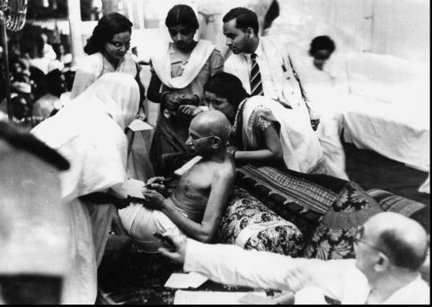 1942, Βομβάη. Ο Μαχάτμα Γκάντι περιτριγυρισμένος από τους οπαδούς του στο παν-Ινδικό συνέδριο στη Βομβάη, υπογράφει αυτόγραφα, λίγο πριν τη σύλληψή του. Τα αυτόγραφα θα πωληθούν προς περίπου 1.65 δολάρια το ένα, και τα έσοδα θα πάνε στους φτωχούς της χώρας.