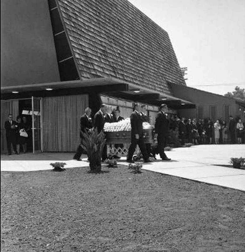 1962, Χόλιγουντ. Το φέρετρο με το άψυχο σώμα της Μέρλιν Μονρόε μεταφέρεται από το περεκκλήσι στο οποίο εψάλη η νεκρώσιμος ακολουθία, στην κρύπτη στην οποία θα ταφεί.