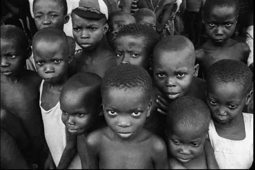 1968, Μπιάφρα. Μικρά παιδιά περιμένουν με αγωνία να πάρουν τρόφιμα. Οι ανθρωπιστικές οργανώσεις και τα Ηνωμένα Έθνη δίνουν αγώνα για να ταΐσουν του πεινασμένους της Μπιάφρα και να σώσουν ζωές.
