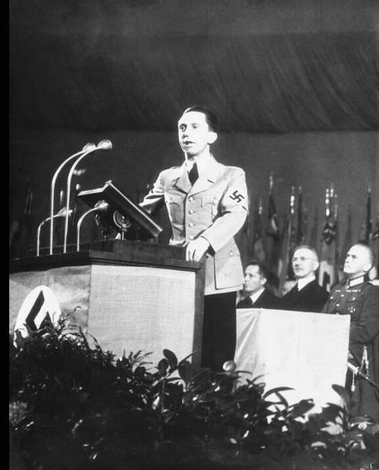 1939, Γερμανία. Ο υπουργός Προπαγάνδας του Ράιχ, Γιόζεφ Γκέμπελς, σε ομιλία του κάπου στη Γερμανία.