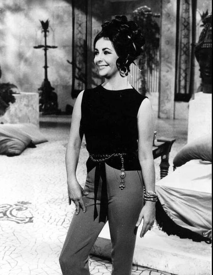 1962 Η Αμερικανίδα ηθοποιός Ελίζαμπεθ Τέιλορ ποζάρει στο πλατό όπου γυρίζεται η "Κλεοπάτρα", στα στούντιο της Τσινετσιτά στη Ρώμη.