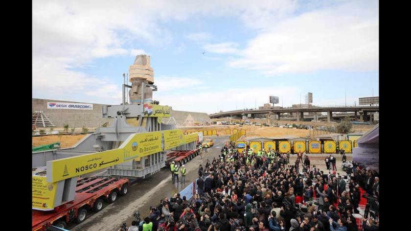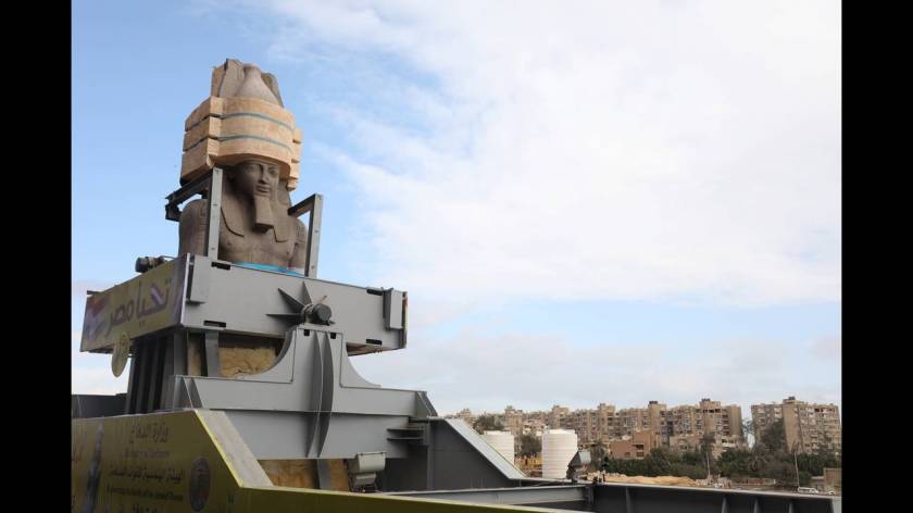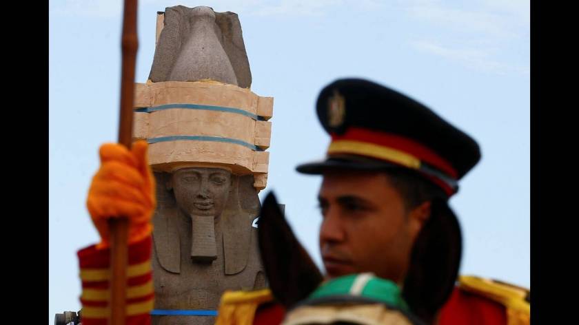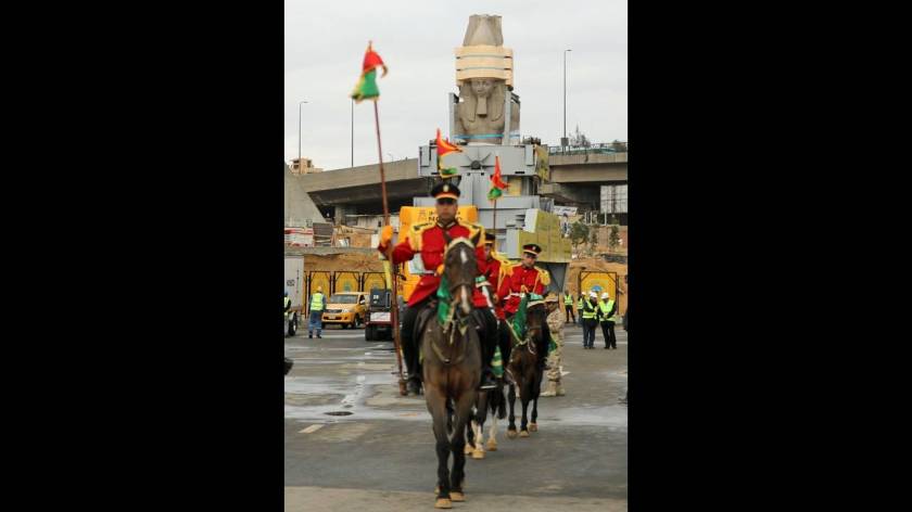 Το αρχαίο άγαλμα του βασιλιά Ραμσή ΙΙ, το οποίο ζυγίζει 83 τόνους και είναι ηλικίας 3.200 ετών, «πέρασε» μέσα από το Κάιρο ώστε να τοποθετηθεί στο αίθριο του νέου Μεγάλου Αιγυπτιακού Μουσείου.