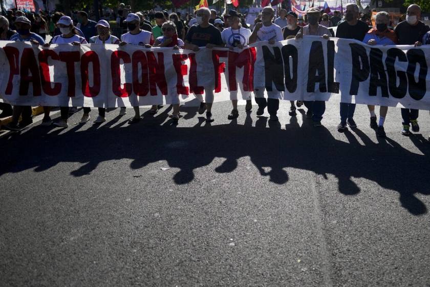 Δεκάδες χιλιάδες πολίτες της Αργεντινής διαδήλωσαν εναντίον της επαναδιαπραγμάτευσης του χρέους που η κυβέρνηση της χώρας υποχρεούται να αποπληρώσει στο Διεθνές Νομισματικό Ταμείο, προοπτική που ανακινεί τον φόβο της κοινωνικής κατάρρευσης που προκάλεσαν προγράμματα διαρθρωτικής προσαρμογής στο παρελθόν.