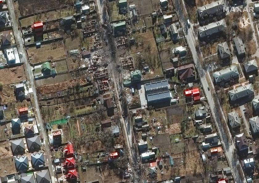 Οι δορυφορικές εικόνες δείχνουν επίσης καμένα στρατιωτικά οχήματα της Ρωσίας στην κατοικημένη περιοχή Μπούχα, έξω από το Κίεβο. Ουκρανοί αξιωματούχοι ανέφεραν πως είχαν παρεμποδίσει την προέλαση των ρωσικών δυνάμεων.
