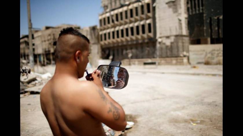 Μέσα στον όλεθρο όμως ξεπηδούν μικρές εστίες «φωτός» με μικροπωλητές να δίνουν λίγο χρώμα στη μουντή καθημερινότητα της πόλης.