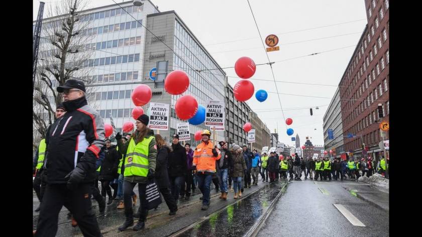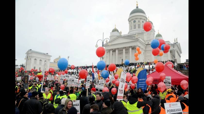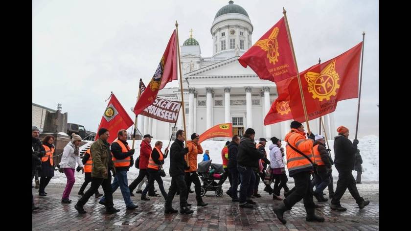Περίπου 200.000 εργαζόμενοι στους τομείς της βιομηχανίας, των μεταφορών και των κατασκευών προχώρησαν σε απεργία ενώ άλλα συνδικάτα ενθάρρυναν τα μέλη τους να συμμετάσχουν στη διαδήλωση στο Ελσίνκι, όπως μετέδωσε το Reuters.