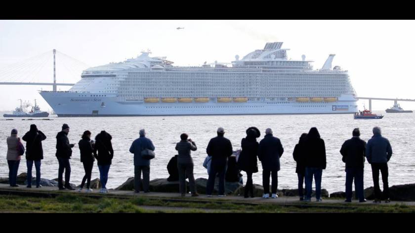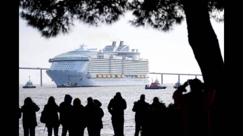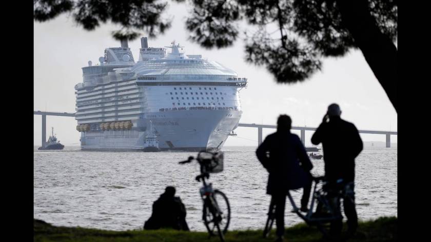Το «Symphony of the seas», το μεγαλύτερο κρουαζιερόπλοιο στον κόσμο που παραδόθηκε από τα γαλλικά ναυπηγεία STX, σήκωσε άγκυρες σήμερα το πρωί από το λιμάνι Σεν-Ναζέρ, στη δυτική Γαλλία, μπροστά σε εκατοντάδες ανθρώπους που είχαν έρθει για να παρακολουθήσουν τον εντυπωσιακό ελιγμό.