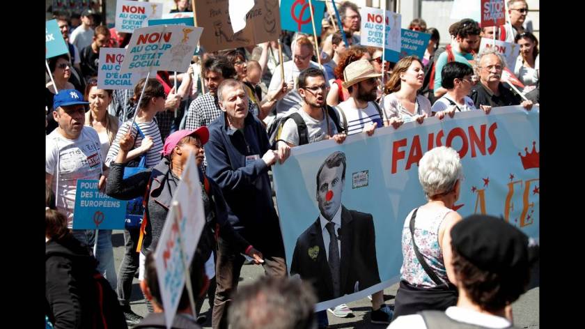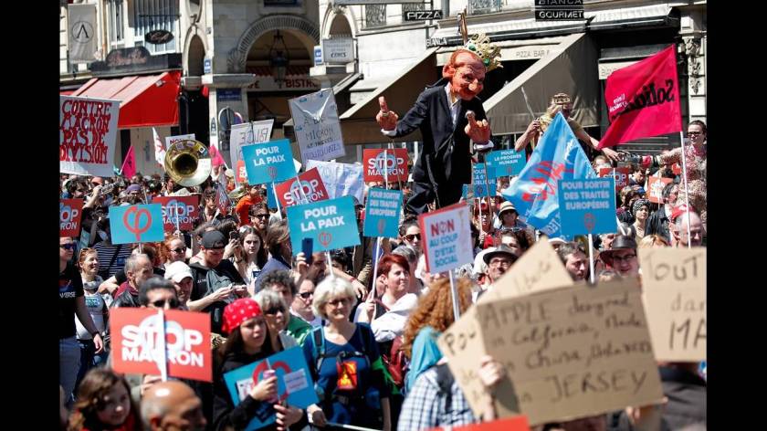Μια ογκώδης διαδήλωση διαμαρτυρίας κατά των μεταρρυθμίσεων του Γάλλου προέδρου, Εμανουέλ Μακρόν, διοργανώθηκε σήμερα στη γαλλική πρωτεύουσα, κατά την πρώτη επέτειο από την ανάληψη των καθηκόντων του.