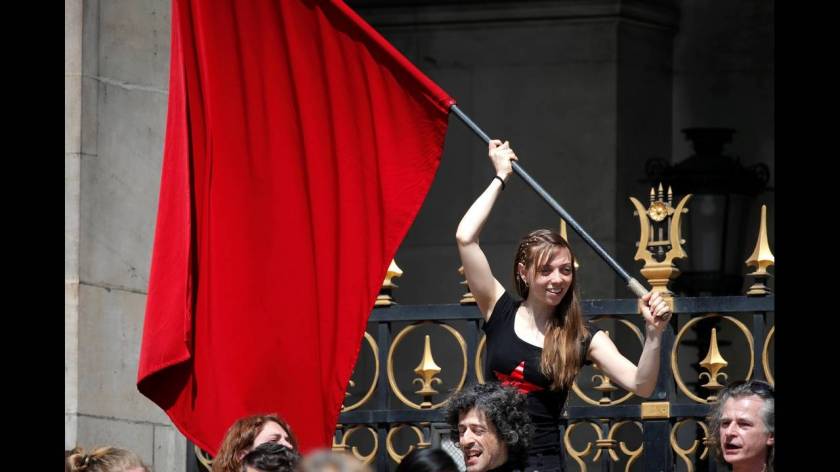 Η διαδήλωση που ονομάστηκε ένα «Πάρτυ για τον Μακρόν» («la Fête à Macron») ξεκίνησε νωρίτερα σήμερα από την Place de l'Opera μέσα σε εορταστική ατμόσφαιρα με καλοκαιρία και μαζικό πικνίκ αλλά και με τους συμμετέχοντες να κρατούν πανό που έγραφαν «Σταματήστε τον Μακρόν», «Μακρόν, ο πρόεδρος των πλουσίων» και «Μακρόν, βγες από το τοπίο».