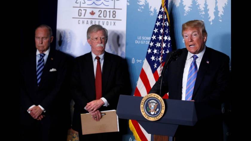 Πριν φύγει από τη μικρή πόλη Λα Μαλμπέ του Κεμπέκ (ανατολικά) για να ανέβει στο αεροπλάνο για τη Σιγκαπούρη, όπου την Τρίτη θα συναντηθεί με τον Βορειοκορεάτη ηγέτη Κιν Γιονγκ Ουν για μια ιστορική σύνοδο κορυφής, ο Αμερικανός πρόεδρος προσπάθησε να κατευνάσει τις εντάσεις που προκλήθηκαν ιδίως από την πολιτική προστατευτισμού την οποία ακολουθεί.