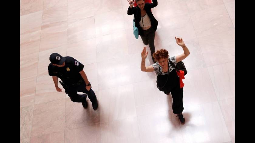 Εκτός από τη Σάραντον, η αστυνομία συνέλαβε και την υποψήφια των Δημοκρατικών Πραμίλα Τζεϊαπάλ, η οποία χαρακτήρισε απάνθρωπη την πολιτική του προέδρου Ντόναλντ Τραμπ για τη μεταχείριση των μεταναστών στα σύνορα.