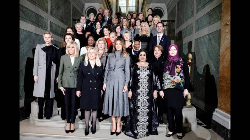 Μελάνια Τραμπ, Σαρλίν του Μονακό, αλλά και Ξαβιέ Τζιοκαντί: Οι σύζυγοι των αρχηγών κρατών και κυβερνήσεων, που παρέστησαν στις εκδηλώσεις για τη λήξη του Α΄ Παγκοσμίου Πολέμου έτυχαν θερμής υποδοχής από την Πρώτη Κυρία της Γαλλίας Μπριζίτ Μακρόν για ένα γεύμα στα Ανάκτορα των Βερσαλλιών.