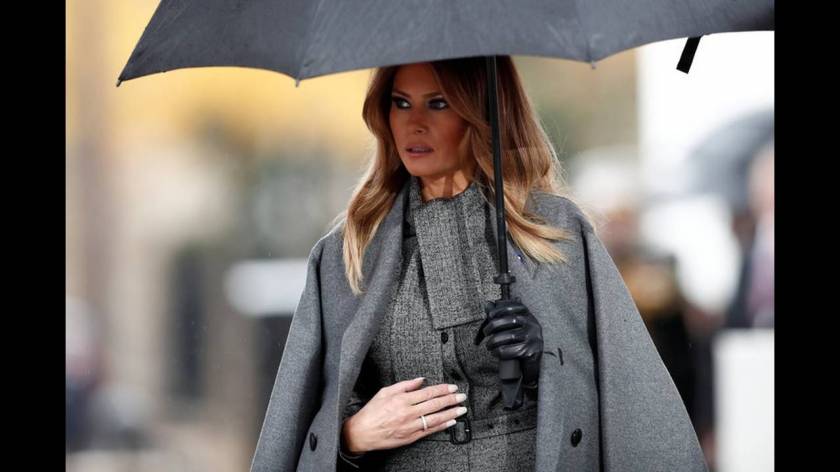 Η σύζυγος του προέδρου των ΗΠΑ Μελάνια Τραμπ, με ένα γκρι σύνολο, έφθασε τελευταία, αρκετή ώρα μετά τις άλλες.