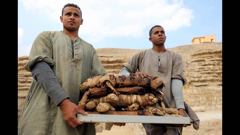 Οι αρχαιολόγοι ανακάλυψαν δεκάδες μούμιες γατιών και μια εξαιρετικά σπάνια συλλογή μουμιοποιημένων σκαραβαίων, μέσα σε επτά σαρκοφάγους ηλικίας άνω των 6.000 ετών, στην άκρη του πυραμιδικού συγκροτήματος της νεκρόπολης Σακκάρα, νότια του Καΐρου.