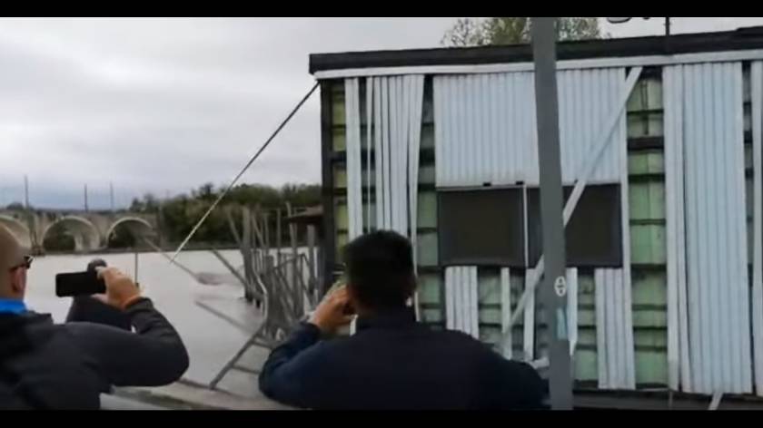 Σε βίντεο που έρχεται στο «φως» της δημοσιότητας, φαίνεται να σπάνε τα αγκυροβόλια που κρατούν το «La Barcaccia» και το εστιατόριο να αποκολλιέται από την προβλήτα.