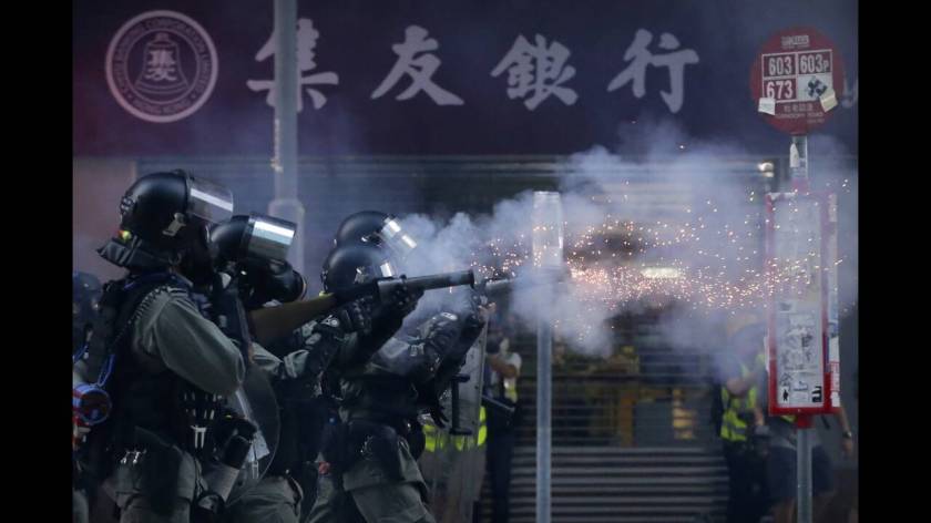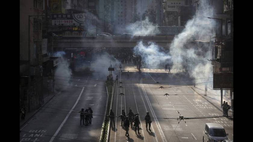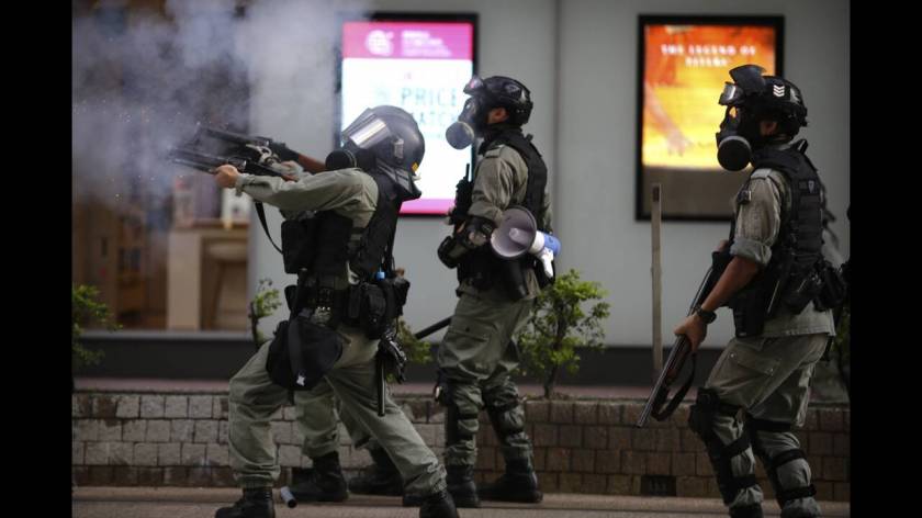 Χθες, Κυριακή, η αστυνομία έκανε εκτεταμένη χρήση δακρυγόνων για να διαλύσει διαδηλωτές που απέκλεισαν δρόμους και προκάλεσαν φθορές ιδίως σε εμπορικά κέντρα στον σημαντικότερο χρηματοοικονομικό κόμβο της Ασίας.