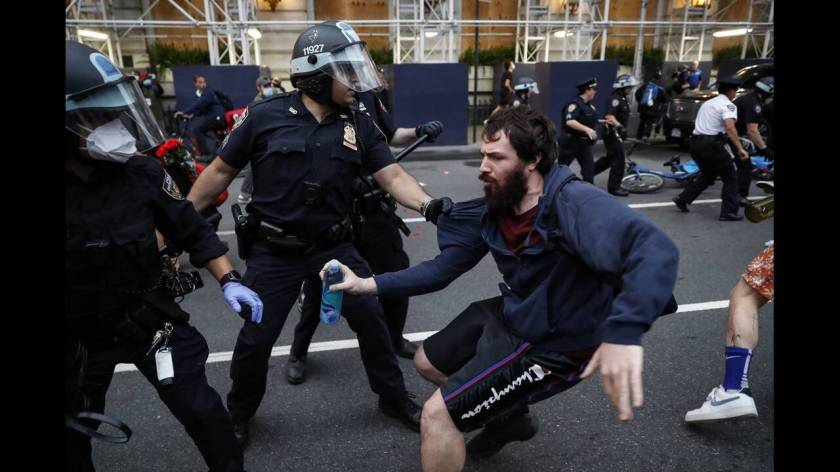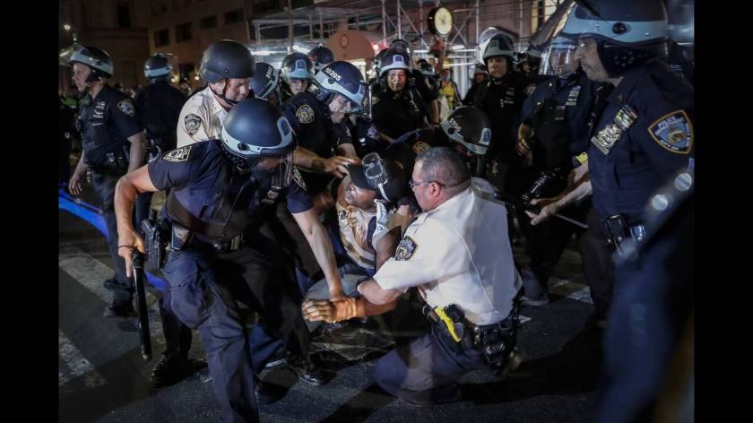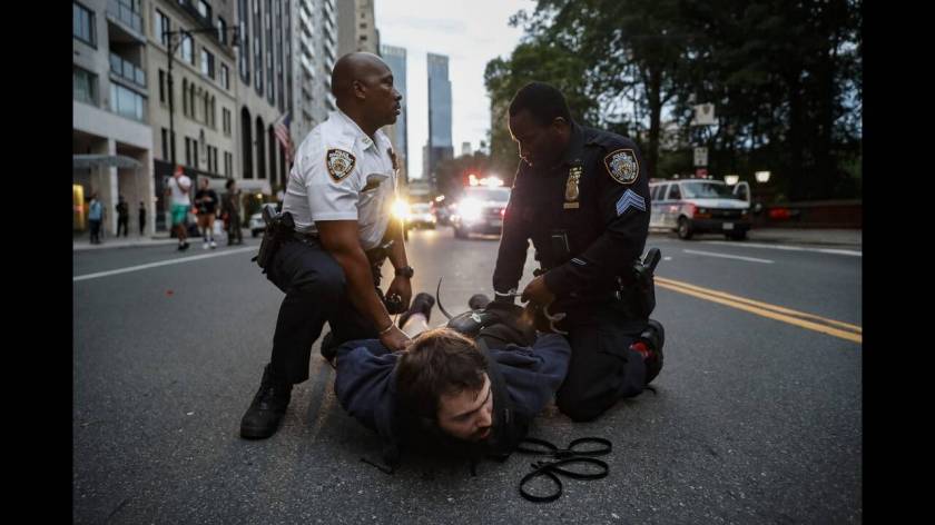 Στο Μανχάταν, αστυνομικοί συνέλαβαν περίπου 18 διαδηλωτές, επειδή βγήκαν στους δρόμους για να διαμαρτυρηθούν παρά την απαγόρευση κυκλοφορίας που έχει επιβληθεί.