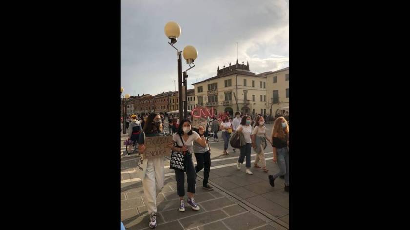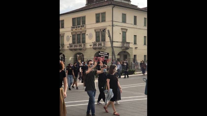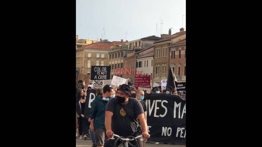 Εικόνες από πορεία στη Βενετία στη μνήμη του Τζορτζ Φλόιντ που δολοφονήθηκε στις ΗΠΑ από αστυνομικούς κατέγραψε το CNN Greece.